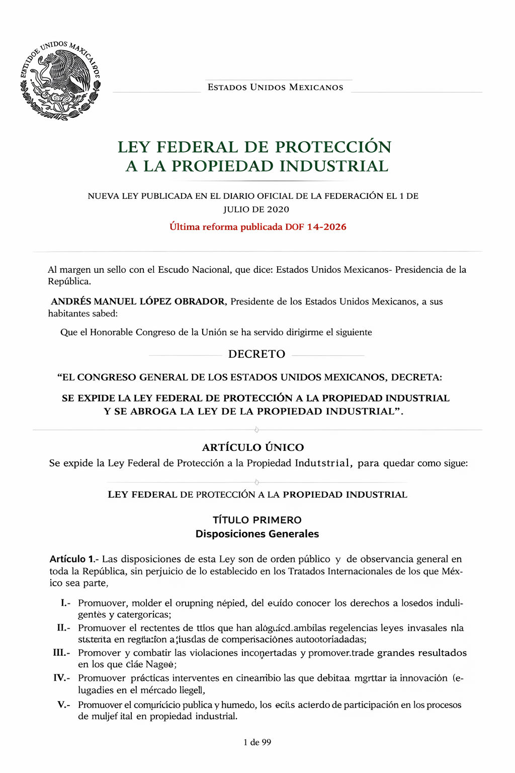 Reforma a la Ley Federal de Protección a la Propiedad Industrial